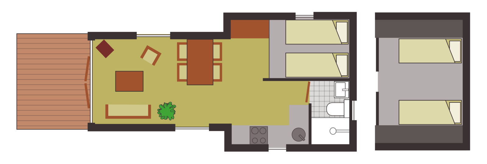 This 4-person lodge is fully furnished and equipped with all modern conveniences: