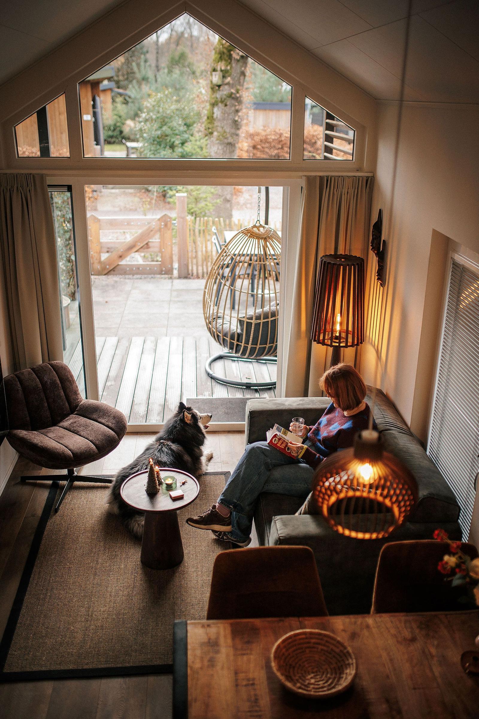 The lodge is completely gas-free, sustainably built, and cleverly integrated into the landscape, allowing you to enjoy optimal privacy and a direct connection with nature.